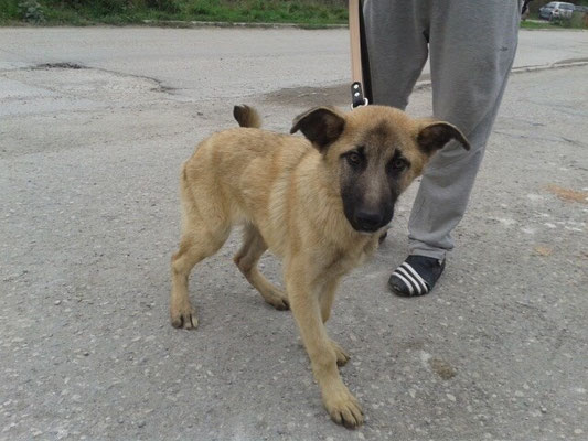Er zeigte sich sofort sehr aufgeschlossen und genoss unsere Nähe. Er wird ein großer Hund werden und ist aktiv, er fordert seine Bewegung ein.