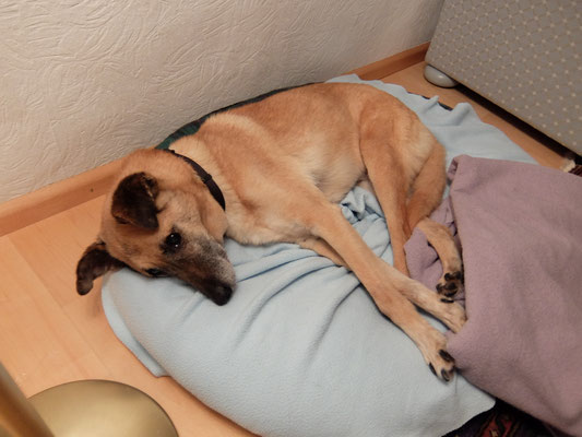 Lucky war zunächst ziemlich abgemagert als er nach Deutschland kam. Es ging ihm nicht gut und er fraß nichts. Nach längerer Therapie und dank guter Fürsorge und viel Liebe hat er sich nun erholt, frisst mit großem Appetit und genießt sein neues Leben!
