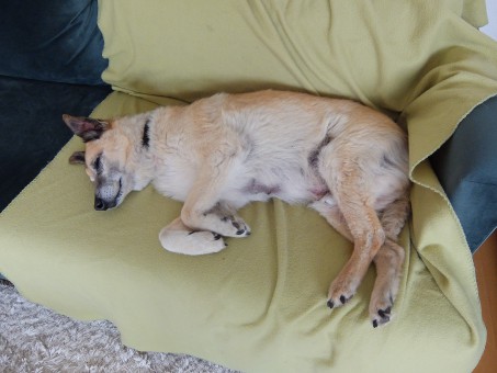 Lucky geht es gut! Er ist jetzt ein hübscher alter Herr, der viele Menschen und Hundebekanntschaften mit seiner freundlichen Art beeindruckt. Das erste Jahr - oder sogar etwas länger - konnte man wirklich nicht sagen, ob die Sache gut ausgeht und er durchkommt. Es war ein langer Prozess.