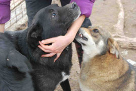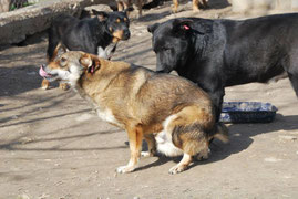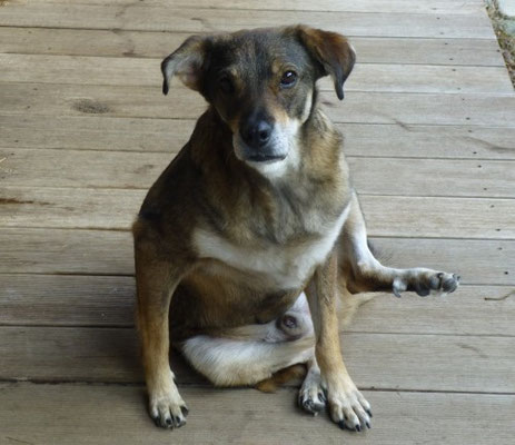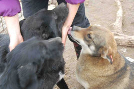 Behinderung angerannt kommt und schmusen möchte (er leckt die Hände und gibt unentwegt Küsschen). Er genießt die Nähe zu uns, geht aber auch mit seinen Artgenossen sanft um.