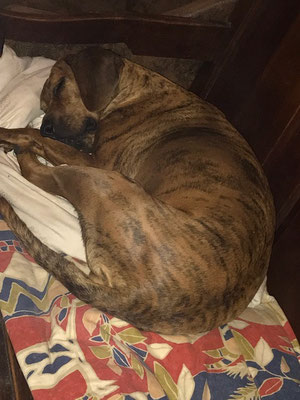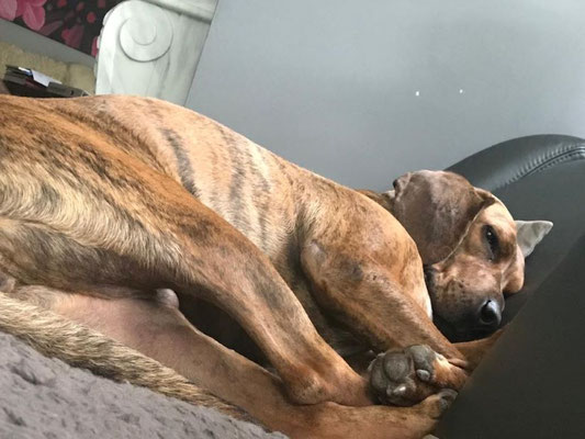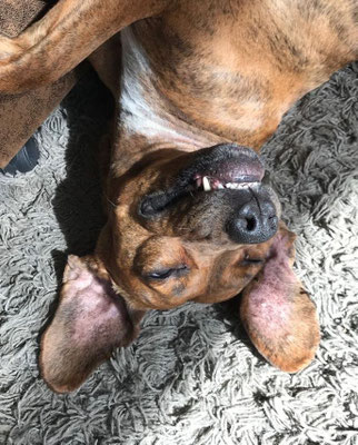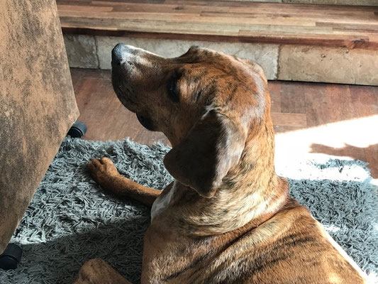 Das Honigbienchen Cleo (so liebevoll von meinem Mann genannt) geht es soweit gut. Letztes Jahr hatte sie uns große Sorgen bereitet, da sie einen schweren Bandscheibenvorfall in der Halswirbelsäule/übergang Brustwirbelsäule hatte, der operativ behandelt werden musste. Gott sei Dank hat sie alles gut überstanden und ist wieder ganz die Alte. Sie chillt ihr Leben und ist einfach nur zauberhaft. Wir bereuen keinen Tag mit ihr, auch wenn der Start etwas holprig war.