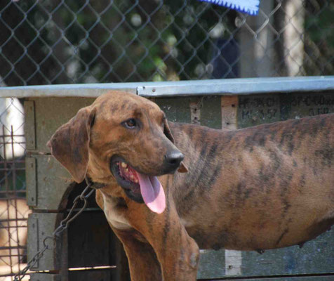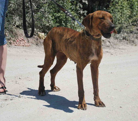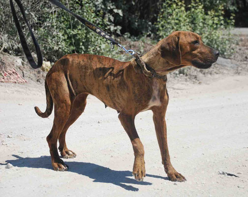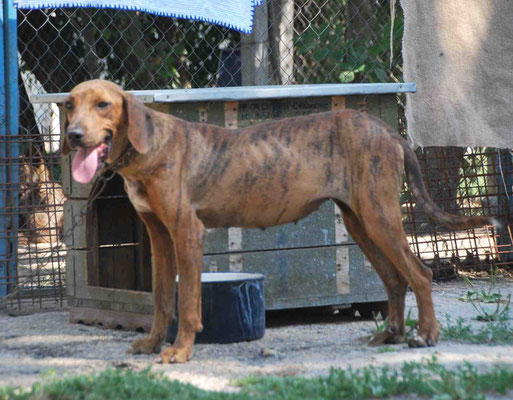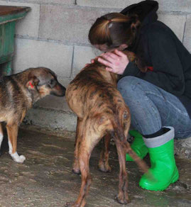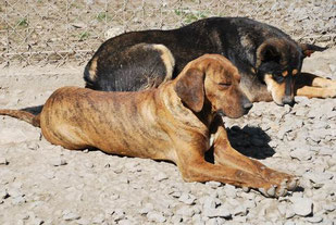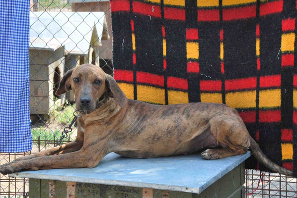 Im Moment hat Cleo eine sehr gute Figur. Sie war immer zu dünn, hat aber mittlerweile zugenommen und fühlt sich mit den anderen jungen Hunden, mit denen sie den Auslauf teilt, sehr wohl. Denn die sind genauso verspielt wie Cleo und es macht Spaß, ihnen beim Nachlauf spielen zuzusehen.