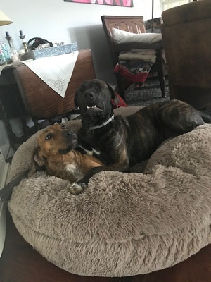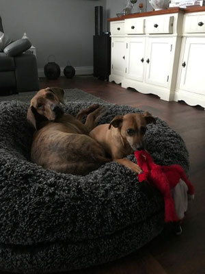 Uns geht's gut und die Mädels (Lotta und Cleo) verstehen sich prima. Cleo wird immer fröhlicher und lustiger, da geht einem wirklich das Herz auf. Wir gehen jetzt regelmäßig in die Hundeschule und Cleo macht das wirklich gut, bin total stolz auf die "Große".