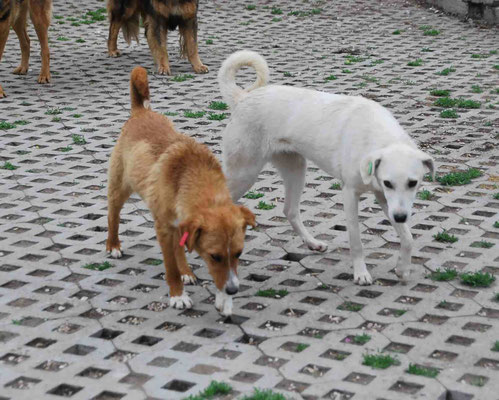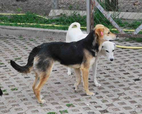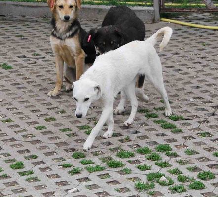 Bei meinem letzten Besuch im Tierheim in Schumen zeigte Luni sich in ihrem Rudel als eher vorsichtige, zurückhaltende Hündin, die sich mehr im Hintergrund aufhielt.