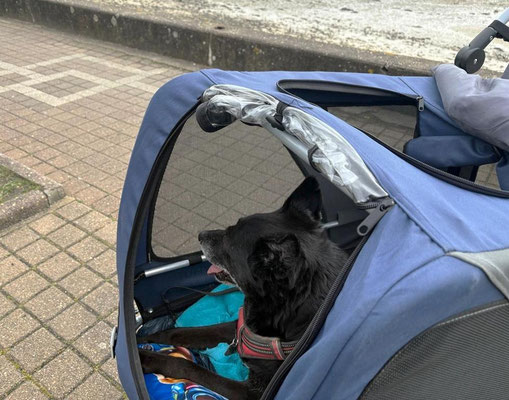 Nox geht für sein Alter noch richtig gut! Dieses Jahr hat er in Frankreich Urlaub gemacht. Er ist gerne draußen, genießt die frische Luft und ist auch mit seinem "Noxmobil" noch viel unterwegs!