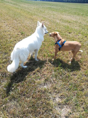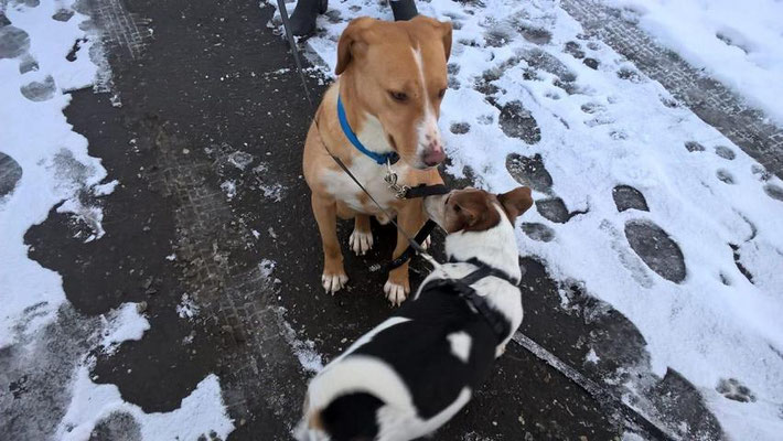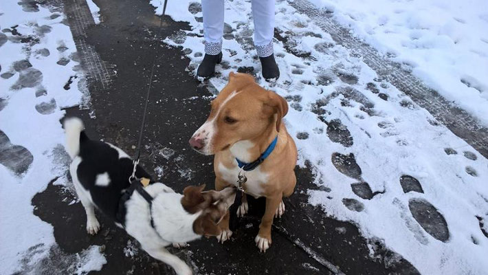 Sucht er Aufmerksamkeit, springt er uns ganz zaghaft an, so dass er kaum Druck ausübt, wenn wir uns wegdrehen, macht er sich auf den Hinterbeinen groß, weil er gesehen werden will.