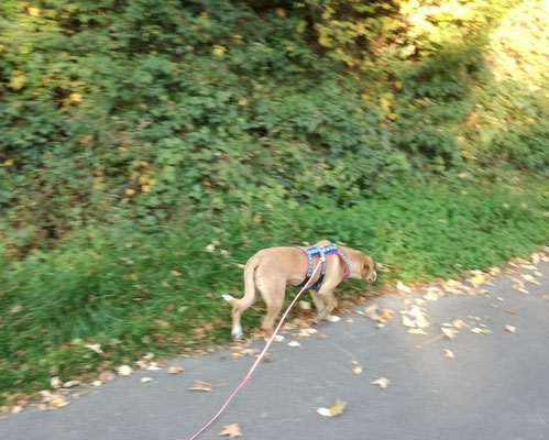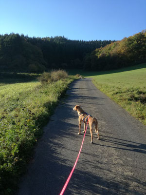 Extremes Speicheln auf Kurzstrecke ist noch erträglich, aber zweimal hat Roger nun schon bewiesen, dass wir 40 km fahren, um irgendwo an schönen Orten Gassi zu gehen, erst einmal lassen.