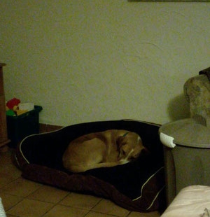 Er begleitet uns nicht in unser Schlafzimmer im Obergeschoss, obwohl er Treppen freiwillig läuft.