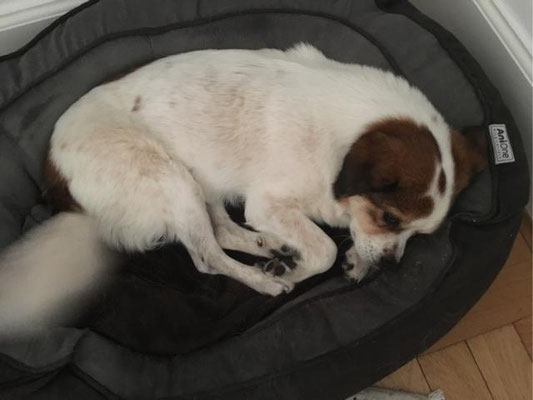 Unser kleiner Carlo durfte sich nach einem halben Jahr im Tierheim auf den Weg in sein eigenes Zuhause machen.