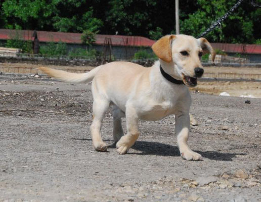 Als wir ihn kürzlich das erste Mal für einen Spaziergang aus dem Auslauf genommen haben, ist er wie selbstverständlich mitgelaufen und hat auch die neuen Eindrücke draußen furchtlos gemeistert! Vielmehr war es so, dass er großen Spaß an der Bewegung und der Abwechslung hatte.