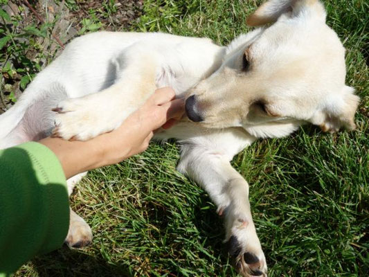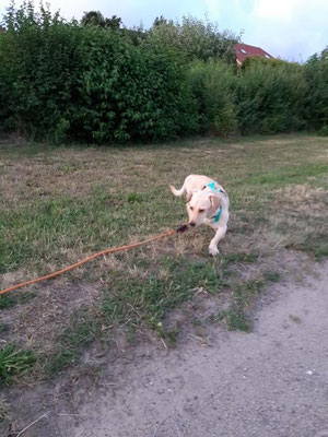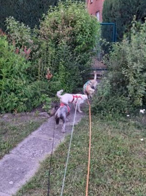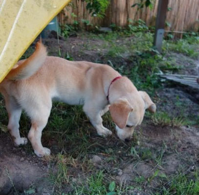 Kaum auf der Pflegstelle angekommen, wird auch schon der Garten erkundet und ausgiebig geschnüffelt, geflitzt und genossen...