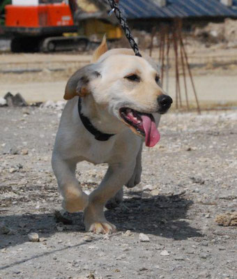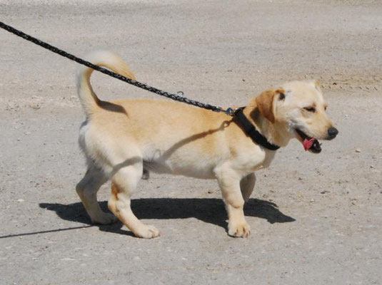 Dingo geht sehr gerne spazieren und läuft toll an der Leine. Im Tierheim war das noch etwas unkoordiniert, aber hier bei uns klappt es schon nach 2 Spaziergängen richtig gut. Auch fremden Hunden begegnet Dingo freundlich und offen.