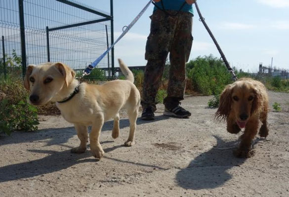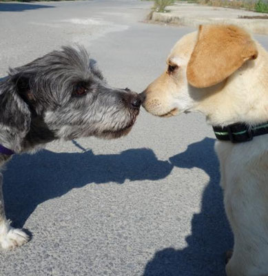 Auch mit seiner ehemaligen "Pflegestellen-Schwester" Mattia darf sich Picco zum Spazieren gehen treffen.