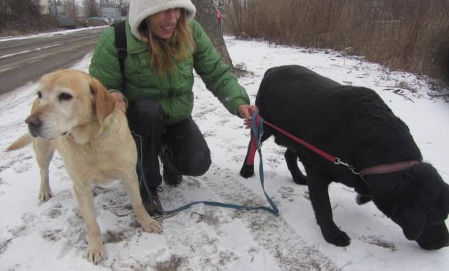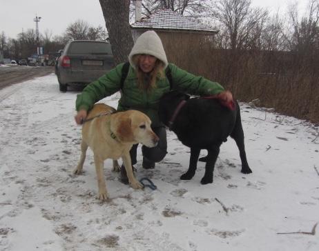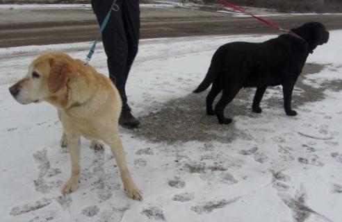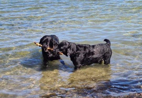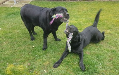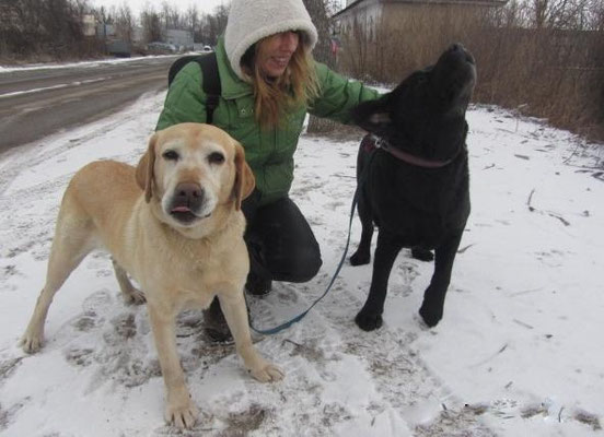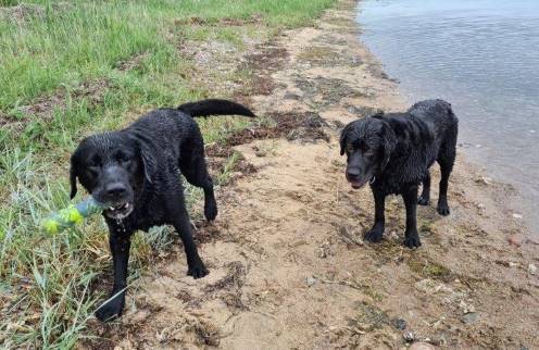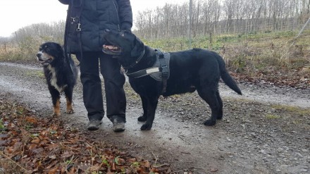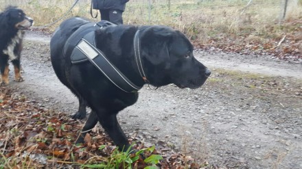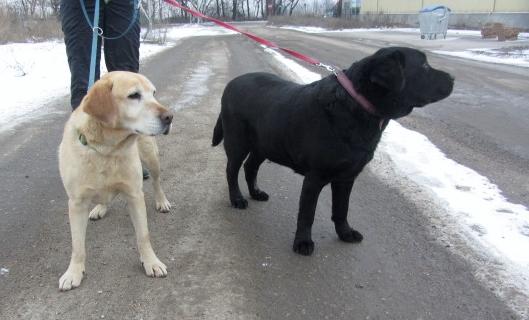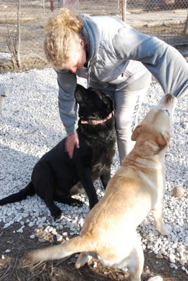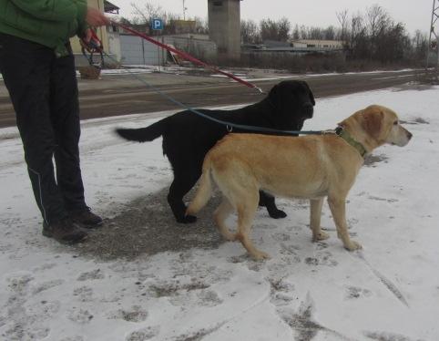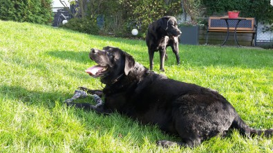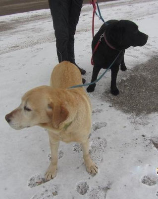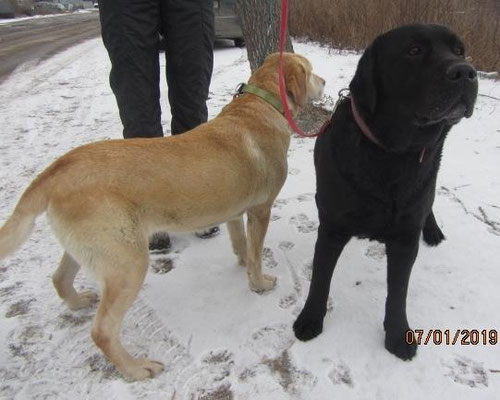 Beide sind für Labradore (oder Labrador-Mischlinge) recht groß, Kaira ist knapp 56 cm, Garet noch größer.