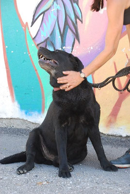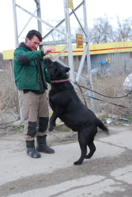 Ansonsten ist er immer noch total unterkuschelt und kann gar nicht genug Streicheleinheiten bekommen. Er ist freundlich zu allen Zwei- und Vierbeinern, die wir treffen und apportiert leidenschaftlich gern.