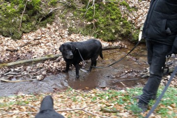 Vorgestern kamen wir an einem kleinen Bach vorbei und Garet hat sich prompt reingelegt. Da das Wasser wohl sehr kalt war, ist er dann schnell wieder aufgestanden. Am Wochenende wird morgens zum Spaziergang immer der Ball mitgenommen und Garet läuft zur Höchstform auf. Ansonsten ist er eher gemütlich unterwegs, da er Spaziergänge wahrscheinlich vorher gar nicht kannte. Er liebt es, gekrault oder gekämmt zu werden und kann gar nicht genug davon bekommen.