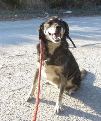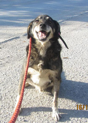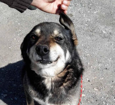 Opa Ole hat ein wenig mehr Schwierigkeiten mit dem Alter, sieht kaum noch etwas und bräuchte eigentlich ein Hörgerät.:) Aber auch er genießt es im Rudel und hat seine Angst vor fremden Menschen, besonders Männern, völlig verloren. Auch eine große Schmusebacke, besonders mit Frauchen.