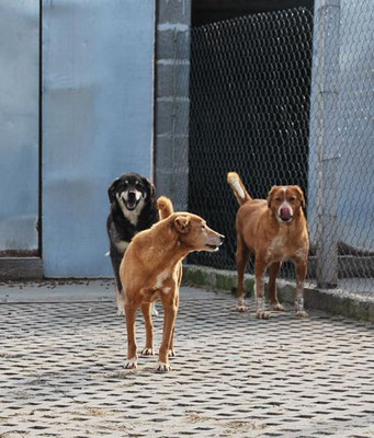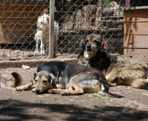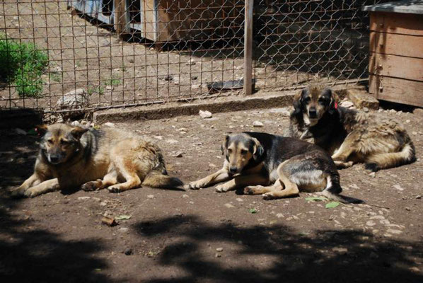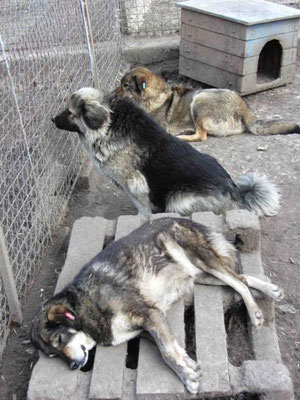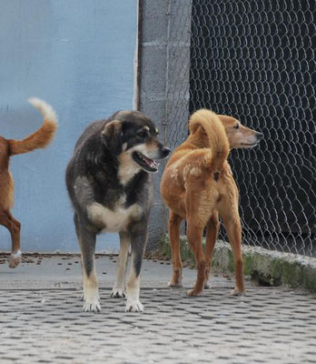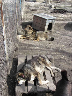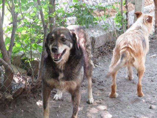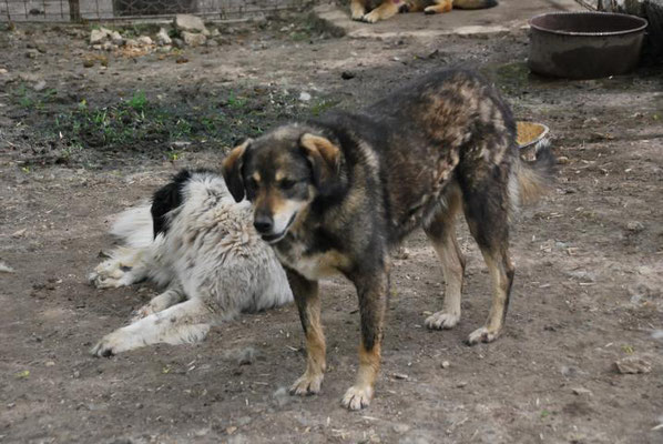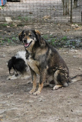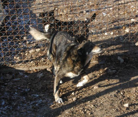 Ole lebt in seinem Auslauf in einem gemischten Hunderudel und ist ganz freundlich zu den anderen Hunden und versteht sich gut mit ihnen.