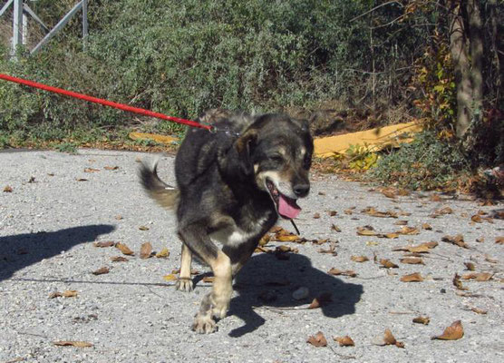 Die Anfangsschwierigkeiten sind nun *fast* überwunden. Er wollte nicht über bestimmte Türschwellen ( musste getragen werden)die glatten Steintreppen zum Obergeschoß wurden mit Sisal belegt und er spurtet für sein Alter dort jetzt ziemlich flott hinauf und hinunter. Langsam beginnt er auch die Spaziergänge zu genießen. Das war das größte Problem, er wollte unser Grundstück einfach nicht verlassen .Er läuft locker an der Leine neben seinem Herrchen und beginnt von der Umwelt Notiz zu nehmen, auch vorsichtig am Gras zu schnüffeln aber am meisten freut er sich wenn er wieder zum Gartentor herein kommt.