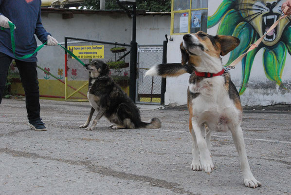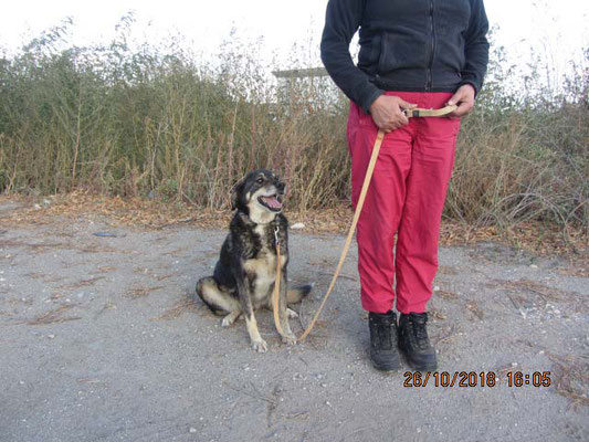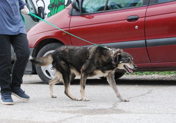 Beim ersten Spaziergang hat sich Ole etwas verunsichert gezeigt und wollte nicht so richtig mitlaufen. Das liegt natürlich vor allem daran, dass die Hunde nie aus dem Auslauf rauskommen und ihnen beim Spaziergang erst einmal alles fremd vorkommt. Dies ändert sich aber meistens ganz schnell, wenn sie etwas Vertrauen gefasst haben und merken, wie schön die Bewegung und die Abwechslung ist!