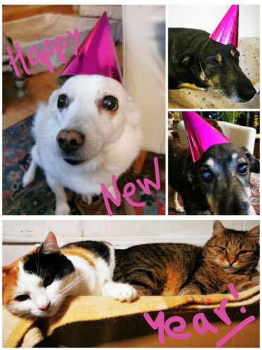 Hier kommen sehr liebe Neujahrsgrüße von den ehemaligen Schumener Hunden Ole und Merle, sowie den Samtpfoten Kian und Shirin. Siri aus Kroatien und alle am anderen Ende der Leine grüßen natürlich auch ganz herzlich und wünschen allen ein frohes und vor allen Dingen gesundes neues Jahr.