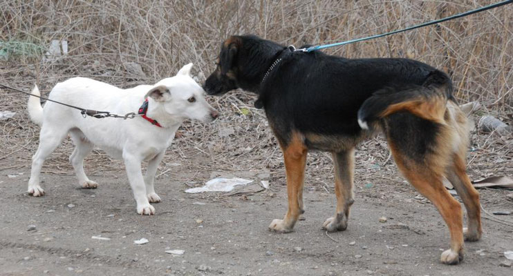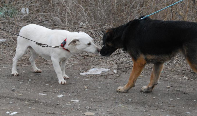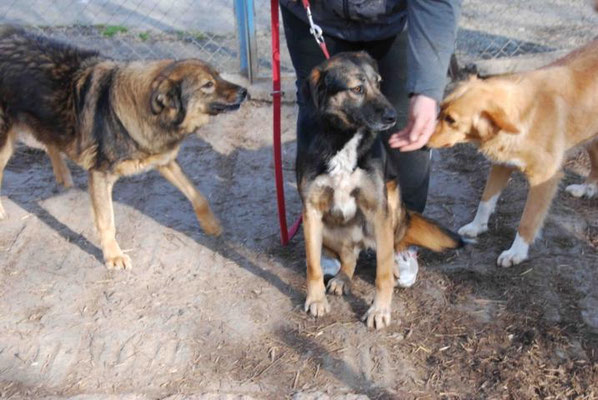 Raffy lebt friedlich in einer gemischten Hundegruppe, in dem er sich eher etwas zurückhaltend zeigt. Das liegt vielleicht auch daran, dass es in der Gruppe zwei Hündinnen gibt, die recht wild sind und damit etwas im Vordergrund stehen.