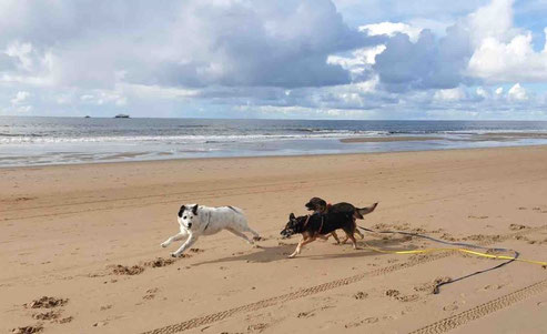 Alba, Raffi und Anni - drei Hunde aus Schumen treffen sich zufällig in Holland am Strand!