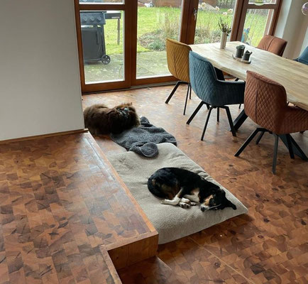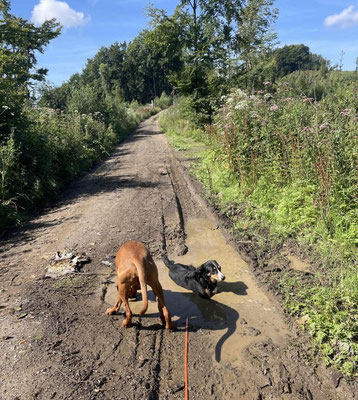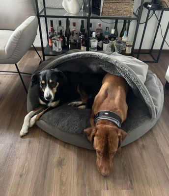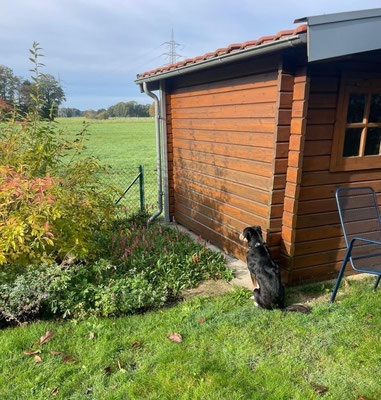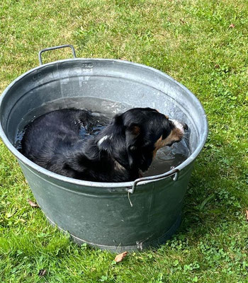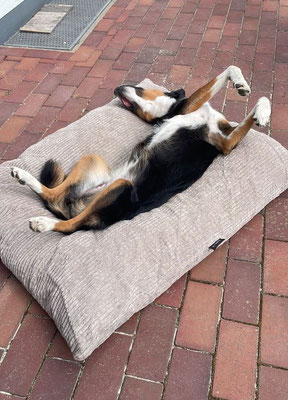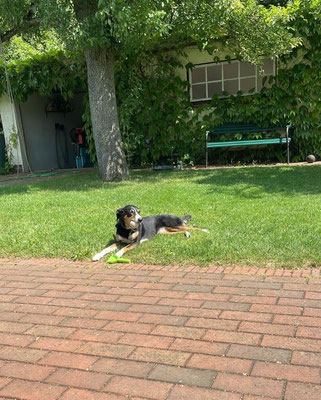 Die Hüftdysplasie haben wir auch gut im Griff. Die Hitze macht ihr manchmal etwas zu schaffen und sie hat nicht so viel Lust zu laufen. Dann lässt sie den Tag einfach entspannt angehen und es wird im Garten gechillt. :)