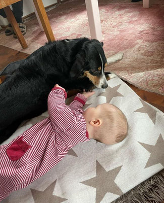 Ansonsten hat sie sich super entwickelt! Sie liebt alle Menschen und alle Hunde. Gila ist ein super aktiver Hund und sehr neugierig und muss gut ausgelastet werden, aber mittlerweile kann sie auch gut chillen. Durch die Operationen haben wir sie zwei Läufigkeiten durchmachen lassen, was ihr aber richtig gut getan hat. Sie ist „erwachsen“ geworden und nun sehr ausgeglichen.