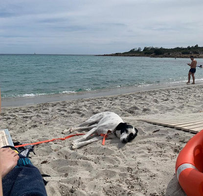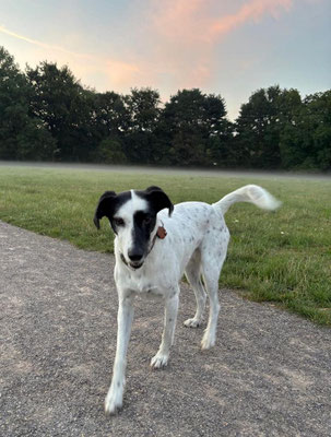 Sie ist sehr lebendig, sportlich und liebt es, mit Artgenossen zu spielen. Gleichzeitig genießt sie es zuhause, „Einzelkind“ zu sein und die volle Aufmerksamkeit ganz für sich zu haben. Ihr Jagdtrieb ist zwar deutlich vorhanden, aber mit der Schleppleine klappt das sehr gut. Ins Wasser geht sie nur mit den Pfoten – richtige Schwimmerin wird sie wohl nicht mehr werden, aber ein bisschen Plantschen macht ihr Spaß.