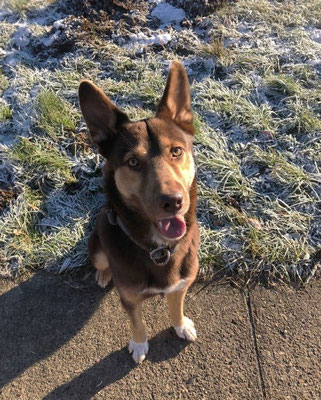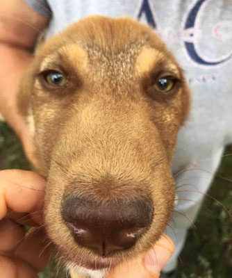 Bjarne (geb. März 2021) kam mit seinen sechs Geschwistern – leider ohne Mutter – schon Mitte April ins Tierheim nach Schumen. Die Muttermilch ist für das Immunsystem der kleinen Hunde so wichtig, aber diese Welpen wurden vermutlich ausgesetzt. Bei einigen Geschwistern war offensichtlich, dass eines der Elternteile ein Husky gewesen sein muss, denn manche der Hunde hatten blaue Augen und eine Husky-Fellzeichnung.