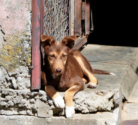 Bjarne ist nicht ängstlich, aber noch ein wenig vorsichtig, was auch nicht verwunderlich ist, da er außer dem Tierheim noch nichts kennenlernen konnte. Immerhin lässt er sich schon streicheln und ist welpentypisch verspielt. Mit seinen Kumpels zu toben und zu spielen nimmt neben Dösen einen großen Teil des tristen Tierheimalltags ein.