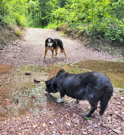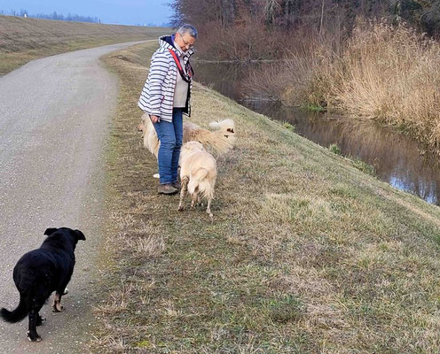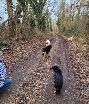 Rosi (früher Cherie), Ivan, Toffee (früher Angie) und Lorenzo senden herzliche Grüße vom gestrigen Waldspaziergang. Niki (früher Edda) war leider schon weitergelaufen, sie fand fotografieren wohl langweilig.