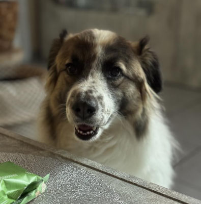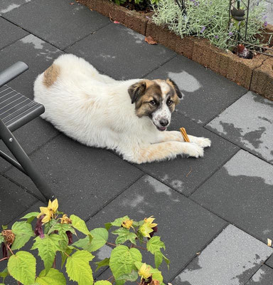 Die Entscheidung für Debby haben wir in keiner Sekunde bereut. Außer 😁 wenn Herrchen ißt (Foto 3), denn dann klagt sie mit ihrem Blick ebenfalls Leckerchen ein. Ihre Endgröße hat sie auch erreicht was den Vorteil hat beim Nachbarn (Foto 6) nach dem Rechten zu sehen.