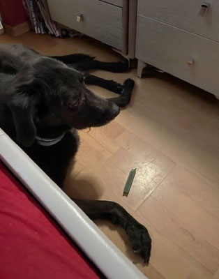 Er ist stubenrein 🙏🏻, erschreckt sich nur noch selten, ist auch bei langen Spaziergängen super an der Leine gelaufen und hat sich bereits mit anderen Hunden angefreundet (da habe ich allerdings vergessen mal ein Bild zu machen 😂).