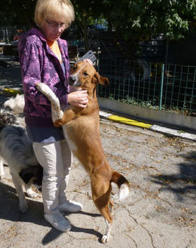Brandi ist eine aufgeschlossene und sehr freundliche Hündin, die dem Menschen gern nahe ist. Wenn wir in ihre Nähe kommen, bewegt sie sich gleich auf uns zu. Gestreichelt werden findet sie klasse und kann nicht genug davon bekommen. So, wie sie sich uns gegenüber verhält, scheint sie mit Menschen bisher glücklicherweise keine schlechten Erfahrungen gemacht zu haben.