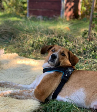 Sie ist aktiv, ziemlich sogar. Sie rennt gerne, ist beim Spiel mit ihren Artgenossen am liebsten mittendrin. Besonders angetan ist sie von Adora und Taco. Die drei sind quasi beste Freunde, aber auch die anderen Hunde im Rudel werden ins Spiel einbezogen. Hauptsache Bewegung, Spaß und Aktion. Hier bekommt man ein fröhliches Powerpaket mit den besten Voraussetzungen. Bei ihr ist vieles denkbar: Sie könnte Zweithund sein, eine treue Begleiterin beim Wandern oder Joggen; auch Agility könnten wir uns für sie vorstellen. Nur ein Couch-Potato ist sie ganz bestimmt nicht.