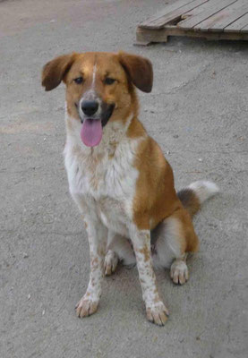 Schon wenn man Brandi (geb. ungefähr im Oktober 2020) zum ersten Mal erblickt, sieht man ihr an, wie freundlich und menschenbezogen ist. Sie scheint zu lächeln und kommt auch ohne direkte Aufforderung gerne auf die Menschen zu. Und wenn sie dann gestreichelt wird, schmiegt sie sich förmlich in die Hand und genießt die Aufmerksamkeit in vollen Zügen. Über ihre Vorgeschichte ist nichts bekannt. Aus dem Verhalten der karamell-weißen Hündin kann man jedoch schließen, dass sie glücklicherweise keinerlei schlechte Erfahrungen mit Menschen gemacht hat. Sie ist offen und aufgeschlossen, geht gerne in den Kontakt. Selbst das Spiel mit den anderen Hunden unterbricht sie immer wieder und fordert eine kleine Portion Streicheleinheiten ein. Und bei diesem bezaubernden Blick kann auch niemand widerstehen.