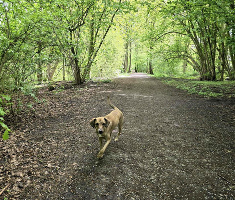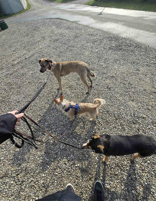Alejandro war anfangs sehr ängstlich, hat aber nach ein paar Tagen gemerkt, dass Menschen und andere Hunde ihm nichts Böses wollen und eigentlich ganz toll sind. In manchen Situationen reagiert er immer noch sehr zurückhaltend, aber glücklicherweise überwiegt bei ihm die Neugier, so dass er beinahe täglich neue Dinge kennenlernt und im Umgang immer routinierter wird.