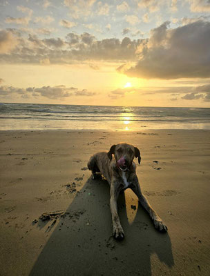 Alejandro heißt inzwischen Negan und hat sich absolut prächtig entwickelt. Er hat ein sehr freundliches, junghundtypisch aufgewecktes und neugieriges Wesen. Aktuell arbeiten wir noch an seiner Frustrationstoleranz, denn das "Pubertier" will gerne diskutieren, wenn ihm etwas nicht passt. 😃 Ansonsten hat er sich prächtig eingelebt, einen Umzug problemlos mitgemacht und ist ein richtiger Campinghund geworden, der die Spaziergänge am Meer genauso genießt wie ich.