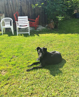 Anbei ein Foto von Ginny bei uns im Garten wo sie die Sonne genießt.
