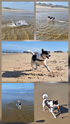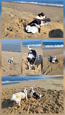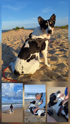 Unseren Campingurlauben kann Maja auch viel abgewinnen. Wird es ihr auf dem Campingplatz doch mal zu lebhaft, zieht sie sich ganz selbstverständlich in den Campingbus zurück. In ihm fühlt sie sich wohl und sicher. Sie freut sich über unsere allmorgendlichen Strandspaziergänge mit den regelmäßigen Hundebegegnungen, der Möglichkeit zum Rennen und toben und dem vielen Sand, in dem man tolle Löcher und Kuhlen zum hineinliegen buddeln kann.