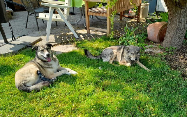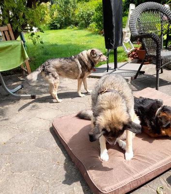 Bei schönem Wetter genießt Paddington es, im Garten zu liegen oder auch mal übermütig über den Rasen zu „springen“. Gassirunden mit mehreren Hunden sind auch kein Problem und Paddy freut sich einfach schnüffeln zu dürfen.