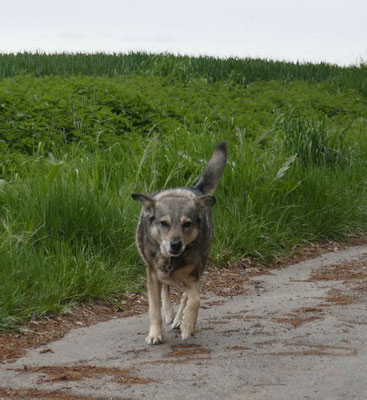 Paddington und Puh waren zwei Streuner, die vor dem Tierheim in Dobrich lebten. Das Tierheim liegt nah, um nicht zu sagen, gefährlich nah an einer Schnellstraße. Und da fahren die Autos und Lastwagen eben wirklich schnell, haben keine Augen für und nehmen keine Rücksicht auf herumlaufende Vierbeiner. So kam es wie es kommen musst, der 48 Zentimeter große Mischling wurde angefahren. Davon übrig geblieben ist eine große Narbe an der Innenseite des Hinterbeins. Obwohl die Röntgenaufnahmen unauffällig sind, humpelt der zurückhaltende Paddington. Möglichweise hat er Arthrose im Knie, bei der regelmäßig verabreichte Schmerzmittel Linderung verschaffen könnten. Zusätzlich eine Extraportion Liebe schenken. Das schadet nie.