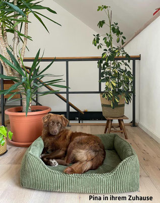 Zu Hause klappt es ebenfalls hervorragend. Pina genießt ihre Streicheleinheiten, liebt die Spaziergänge und freut sich über gemeinsames Spielen und Toben. Sie kann problemlos allein bleiben, und auch die Tage, an denen sie mich ins Büro begleitet, stellen keine Herausforderung dar.