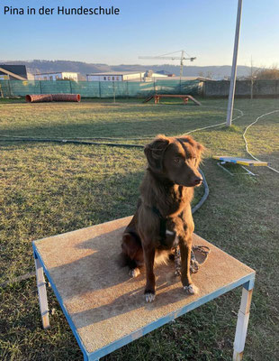 Seit letzten September besuchen wir einmal wöchentlich die Hundeschule. Nach anfänglicher Unsicherheit hat Pina dort schnell Spaß am gemeinsamen Spielen mit den anderen Hunden gefunden, und auch beim Training schnell Fortschritte gemacht. Anfang des Jahres war sie dann auch schon so weit, dass sie in die Alltagsgruppe aufsteigen konnte. Nun wird also nicht mehr auf dem Platz trainiert, sondern seit dem geht‘s in den Park, ins Wohngebiet, in die Stadt oder den Baumarkt. Orientierung am Menschen, Leinenführung, Impulskontrolle, kontrollierter Freilauf, Rückruf… Wir lernen mindestens genauso viel wie Pina und sind zu einem eingespielten Team geworden.