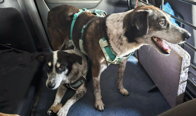 Fremden Hunden oder Unbekanntem wird ausgewichen. Sicher ist sicher. Das Autofahren ist für Lilo noch sehr aufregend, aber seit wir die Autoscheiben verdunkelt haben, fällt es ihr deutlich leichter.
