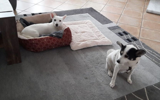Draußen braucht sie jedoch noch Zeit um sich an das Spazierengehen und die vielen neuen Eindrücke zu gewöhnen. Ich gehe mit ihr für den Anfang immer die gleiche nicht zu große Runde. Da muss man ihr noch etwas Zeit geben und nicht überfordern, wir üben fleißig. Am schönsten ist für sie (im Moment noch) wenn es wieder nach Hause geht. Die tägliche Routine wird ihr jedoch bald Sicherheit geben. Begegnungen mit fremden Hunden und Katzen sind überhaupt kein Problem, sie sucht zwar noch keinen direkten Kontakt ist aber absolut sozial und verträglich. Gebellt hat sie bisher noch gar nicht. Zu erwähnen wäre noch, dass sie schon stubenrein ist.
