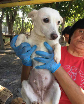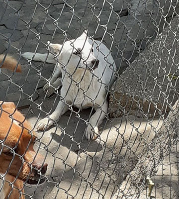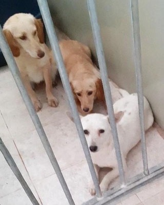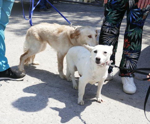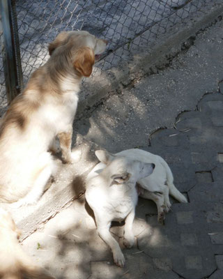 Ihre Geschichte beginnt in einem kleinen Dorf namens Makak. Eigentlich ging es nur um eine trächtige Hündin, als ein Mann uns abends vor dem Supermarkt ansprach. Dann waren es plötzlich drei Hunde und ein Welpe, die am 23. Juni mit ins Tierheim kamen. Der Welpe hat es leider nicht geschafft, wir hätten es ihm so sehr gewünscht.