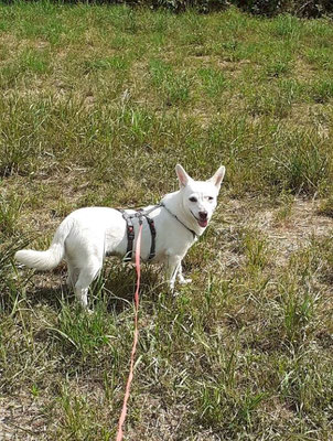 Dabei ist sie so unglaublich liebenswert. Sie ist defensiv, niemals aufdringlich, versteht sich mit allen Hunden und spricht die Hundesprache fließend. Beim ersten Spaziergang war sie noch überfordert – Leine, fremde Umgebung, neue Eindrücke. Alles war ihr etwas zu viel.